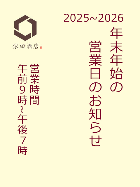 年末年始を依田酒店のおいしいお酒で、心豊かにお過ごしください。